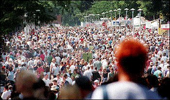 Billy enjoys the large crowds that he can only find at the Minnesota State Fair.  Billy heard that someone, somewhere had a "Almost Foot Long Hot Dog" booth.  He was going to hit that one, then the "Free Root Beer Float" booth, folllowed by the "Boss On A Stick" booth.