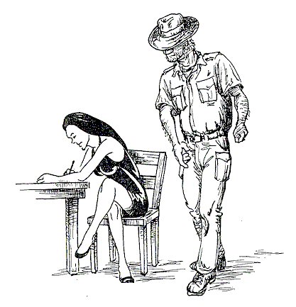 I knew I wasn't going to find Betty Grable here but I thought, at least, I might be able to get a cold beer. What I got didn't resemble beer but it was cold and it had a ten gauge shot gun kick. In my dehydrated condition it didn't take much to knock me out and I ended up asleep on the floor until morning.