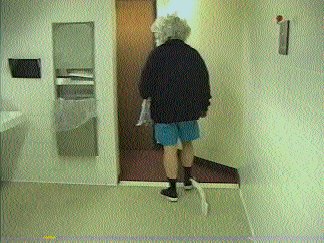 Billy is now returning to his assigned cubical. He's taking some toilet paper back to his area for later.