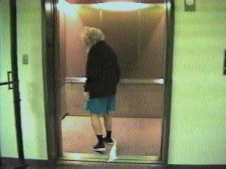 Billy is going to take the elevator to a meeting on a different floor.
